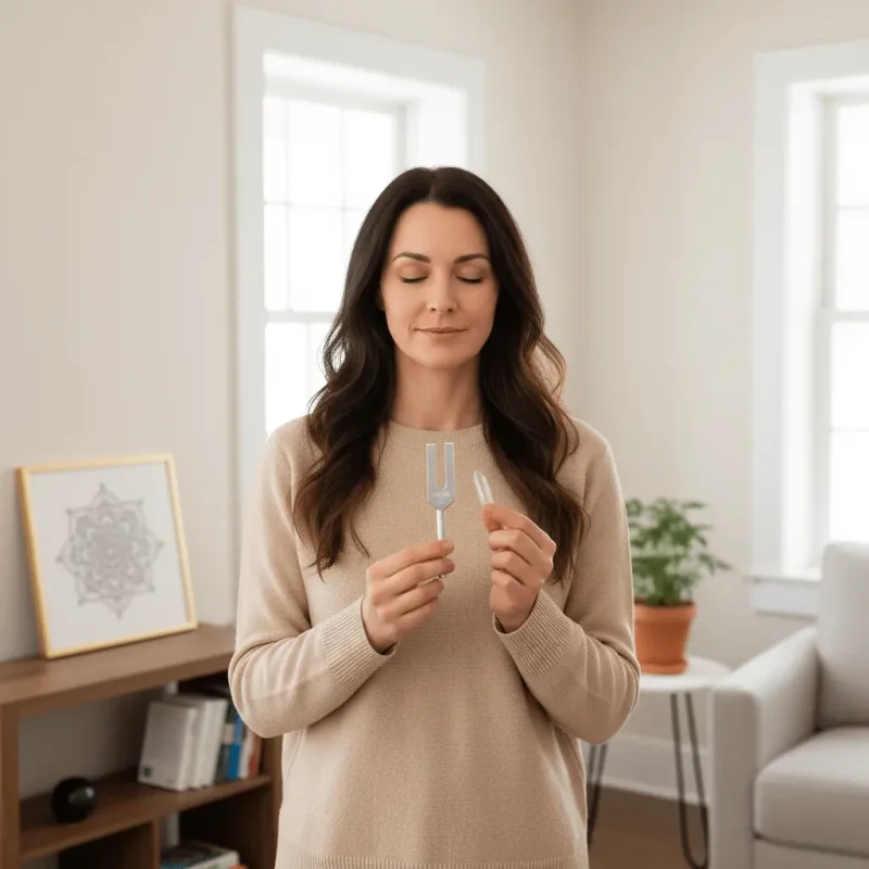 Helyezd a hangvillát kristályok, ékszerek vagy bármilyen spirituális tárgy közelébe, hogy felfrissítsd az energiáikat. -