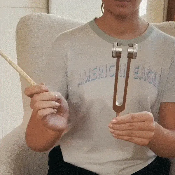 Aktiváld a hangvillát az ütő segítségével, és helyezd közvetlenül a problémás területre.